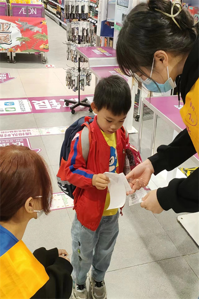 2023年5月11日,武汉城市职业学院旅游与酒店管理专业派出7名志愿者赴武汉市硚口区永旺梦乐城(武胜路店)参加“禧乐小黄票”志愿服务活动。