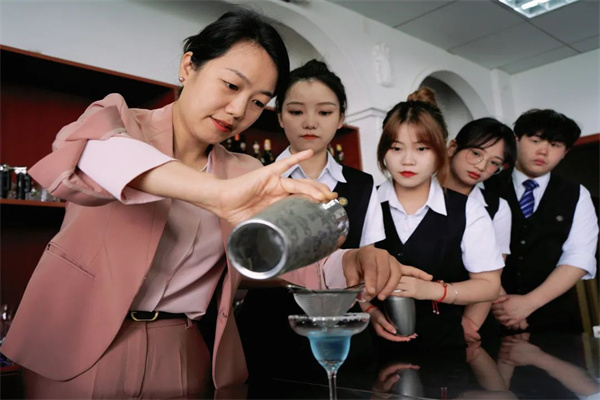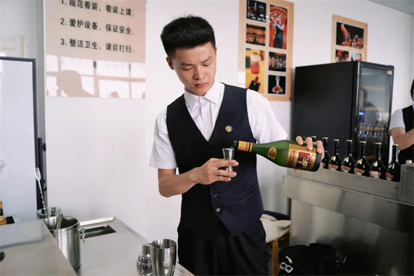 熟记每款酒的配方,熟练掌握每种调酒技术,不放过每次练习机会规范统一的动作,无一不展现着同学们的专业。
