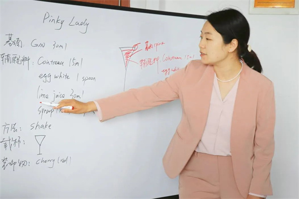 在钟华老师清晰、精炼的讲解下我们了解了经典鸡尾酒Pinky Lady等的制作方法。