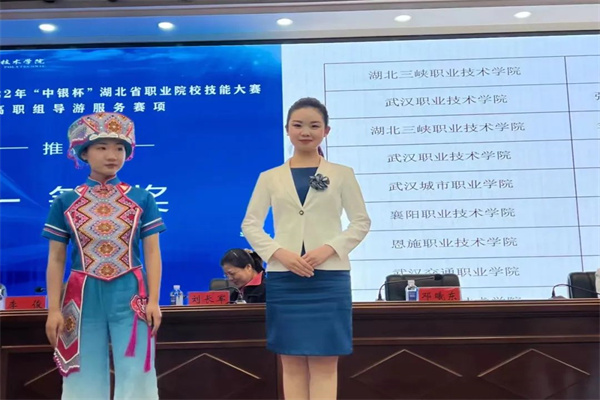 师雯丽深知,只有在专业学习上下苦工,才能更全面地提升自己。周末她没有选择出去游玩,而是独自待在寝室里背导游词、复习功课、查漏补缺。功夫不负有心人,付出的努力赢来了收获,师雯丽在2022年湖北省职业院校技能大赛导游赛项中斩获一等奖,并获得了“湖北省职业技术能手”的称号。
