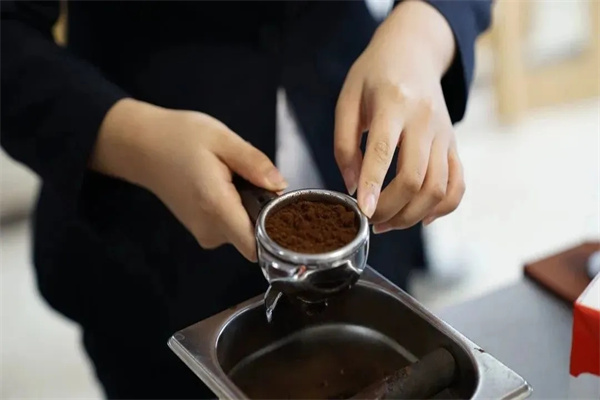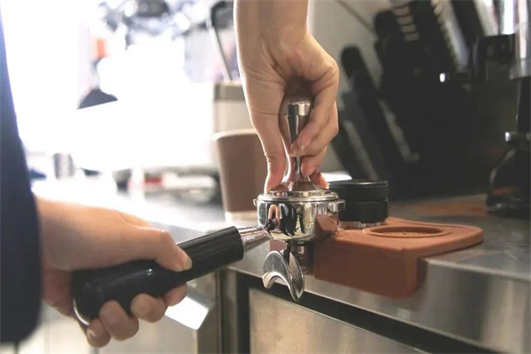 咖啡饼与粉锤进行后期压实
