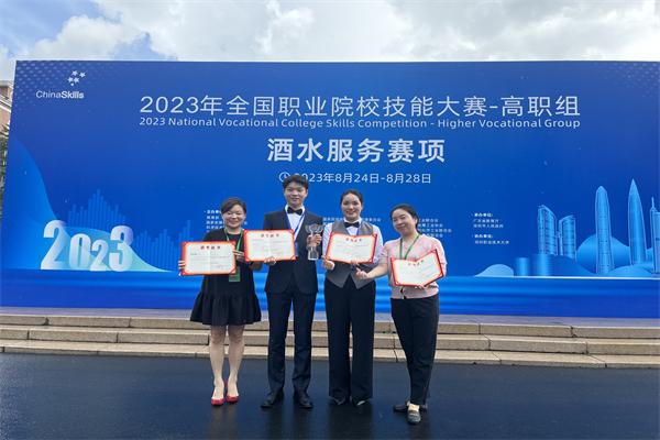 8月28日,全国职业院校技能大赛高职组“酒水服务”赛项在深圳职业技术大学圆满落幕。来自全国60支参赛队伍、120名参赛选手围绕酒水品鉴与侍酒服务、鸡尾酒调制与服务及综合能力测评三大模块展开激烈角逐。学校旅游与酒店管理学院姚诚辉、夏雨琦同学组成的团队荣获一等奖,指导老师楚晓静、谢璐荣获“优秀指导教师”奖。