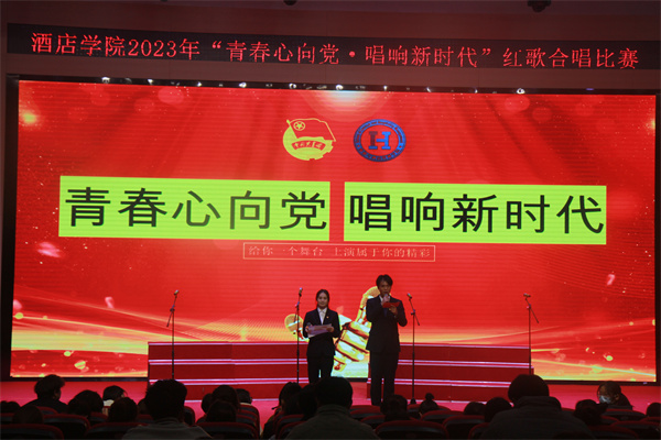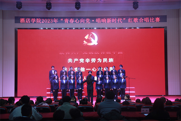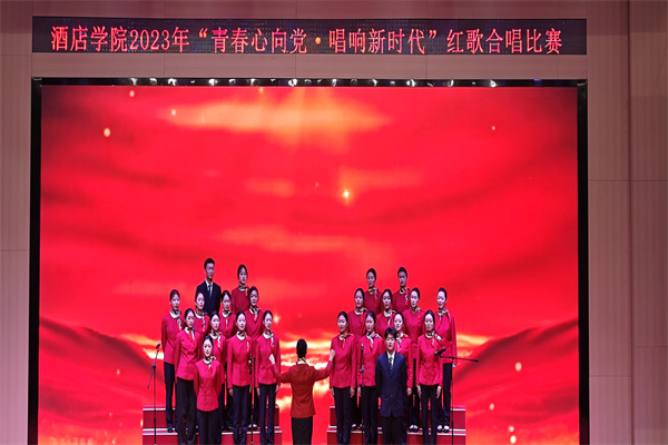 2023年11月28日晚18:30,武汉城市职业学院旅游与酒店管理学院在南校区报告厅开展“青春心向党·唱响新时代”红歌合唱比赛。本次比赛的评委老师是旅游与酒店管理学院学工办主任戴幸老师,辅导员瞿博伟、李先瑶和孙壮壮。