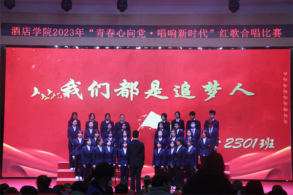 本次比赛在酒店2302班带来的《万疆》中正式拉开序幕,接着大一的每个班级按照抽签顺序给大家带去精彩的红歌表演。他们选择的曲目既有经典爱国歌曲,也有现代流行歌曲,既有《强军战歌》《精忠报国》的斗志昂扬,又有《我和我的祖国》《有我》的满满深情。每一首歌都充满了力量,展现出学生们对历史的深刻理解和对祖国的深厚感情。在同学们表演之时,现场的评委老师们则根据演唱技巧、情感表达和团队协作等多方面对他们进行综合评分。经过激烈的角逐,酒店2303班和旅管2302班获得一等奖。最后,由戴幸老师对整场比赛进行点评,她对所有参与者的努力表示感谢,并鼓励大家继续发扬“一二·九”运动的爱国精神,做新时代下的武城好青年。
