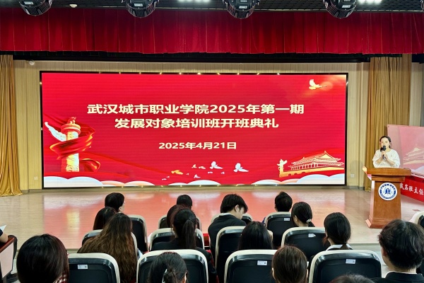 为深入学习贯彻习近平新时代中国特色社会主义思想和党的二十大及二十届三中全会精神,切实加强党员发展对象的培养教育,提升其政治素养与理论水平,4月22日,武汉城市职业学院2025年第一期发展对象党校培训班开班仪式在外语学院小剧场隆重举行。本次培训班由旅游与酒店管理学院主办,外语学院、机电工程学院、建筑工程学院共同参与 。