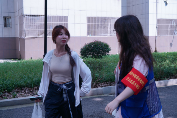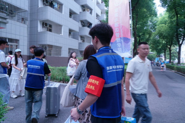 “同学你好,我来帮你!”“家长您放心,交给我们吧!”——这样温暖的话语不绝于耳。汗水浸湿了衣衫,但队员们服务的热忱丝毫不减。鲜艳的袖章不仅代表着身份,更象征着责任与担当。一位新生家长感动地说:“你们这些学生真热心,我们都不好意思了”