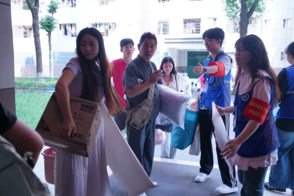 迎新清晨,学生党员先锋队的队员们就已全员到岗,精神饱满地投入工作。在迎新现场,他们是热情的“引导员”,主动迎接每一位新生与家长,耐心解答疑问;在报到点,他们是得力的“助手”,协助班导办理各项入学手续,提供周到服务;在校园道路上,他们是不知疲倦的“搬运工”,肩扛手提,往返穿梭,帮助新生将沉重的行李运送至宿舍。
