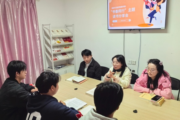 为营造积极向上的校园文化氛围,引导青年学子在阅读中汲取智慧、坚定理想信念,11月26日,旅游与酒店管理学院在橙光社区成功举办了“书香同行”主题图书分享会。学院学工办主任严利老师、团委书记孙壮壮老师、组织员朱瑜老师出席活动,与学生预备党员和发展对象共同分享阅读感悟,交流思想动态。