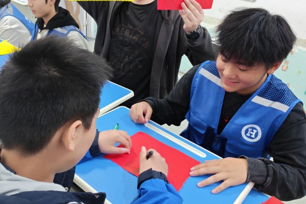 孩子们也以自己的方式回应着志愿者。有的孩子静静听着故事,偶尔露出浅浅的微笑;有的孩子认真看着志愿者制作手工,眼神中透露出好奇与专注,当自己完成部分作品时,眼中会闪过喜悦的光芒。