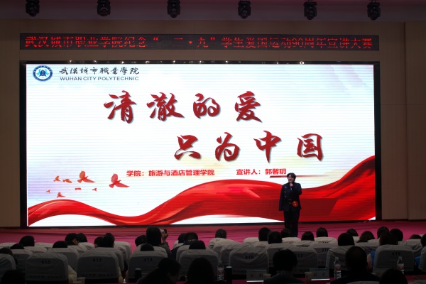 12月9日,武汉城市职业学院校团委在南区学术报告厅举办了以“立报国强国大志向,做挺膺担当奋斗者”为主题的纪念“一二·九”学生爱国运动90周年的宣讲比赛。我院两位旅游管理专业的同学,以青春视角和真挚情感,带来了两场视角独特的主题宣讲。
