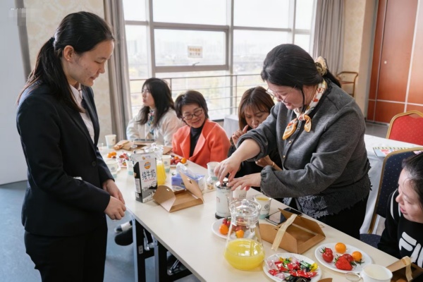 咖啡品鉴体验:醇香之中享乐趣。14:10至15:00的咖啡体验环节同样精彩。专业咖啡师庞肖霞老师以生动的讲解,带大家认识不同产地咖啡豆的风味差异,科普咖啡拉花的基础原理与工具使用方法。随后,女教师们化身“临时咖啡师”分组动手尝试,在庞老师的手把手指导下练习注水、打泡、画圈等拉花技巧。当一个个简单却精致的图案浮现在咖啡表面时,现场满是惊喜与欢呼。大家一边品尝亲手制作的咖啡与精致甜点,一边交流心得,在醇香中释放工作压力。