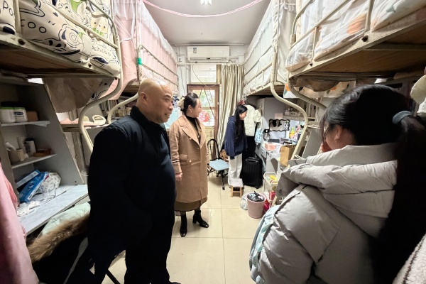 走访中,汪书记逐间排查宿舍环境,重点检查床铺、衣柜、水电等生活设施运行情况,细致排查消防安全隐患,现场纠正违规用电等不规范行为。