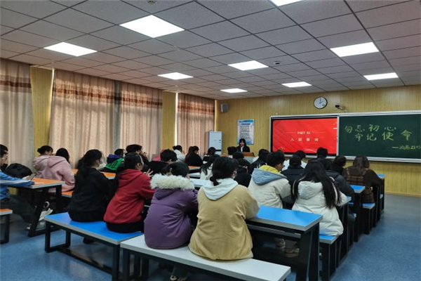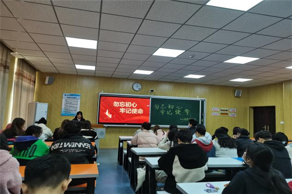 2021年12月14日下午2点,酒店管理2103班在教学楼2-3-208召开了12月支部主题团日。会议议程共分三项内容进行,首先,团支书蒲洋洋同学组织大家一起唱团歌并重温团誓词。其次,开始学习团章,观看习近平总书记在党史学习教育动员大会上的讲话视频。最后是同学们学习党的十九届六中。会议中同学们认真做笔记,积极回答问题,表现非常好。班级同学周沛恒说道:“不忘初心、牢记使命,就要赓续精神力量,从党的光辉历史中汲取源源不断的前进动力。红船劈波行,精神聚人心。红船精神,就是开天辟地、敢为人先的首创精神,坚定理想、百折不挠的奋斗精神,立党为公、忠诚为民的奉献精神。”