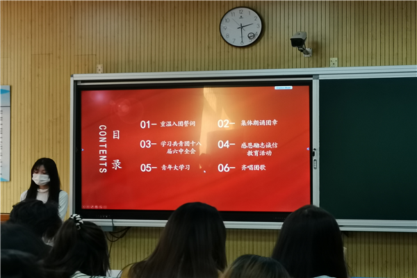 2022年3月10日下午2点30分,酒店管理2103班在教学楼2-3-206召开了3月支部主题团日。会议议程共分三项内容进行,首先,团支书蒲洋洋同学组织大家一起唱团歌并重温团誓词。其次,开始学习团章,学习感恩励志教育活动。最后,同学们学习共青团的十八届六中全会,并且强调同学们积极上交青年大学习这一项任务,不可拖拉。会议中同学们认真做笔记,积极回答问题,表现非常好。班级周沛恒说道:“作为新时代的青年们,我们要以史为鉴、以史为师、以史为镜,深刻领悟党史中的真理力量、实践力量、人格力量,用行动践行使命、用脚步自觉砥砺,赓续中国共产党这百年荣光。”
