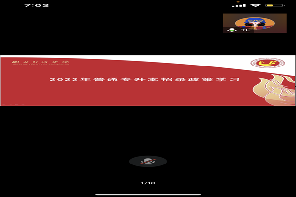 3月24日19:00,我院邀请湖北经济学院招生办公室主任邹冉冉老师,结合我院专业特点为2022届毕业生开展了一场线上专升本报考及备考指导会。185名学生参与在线会议,多名学生直接参与在线互动并表示收获颇丰。