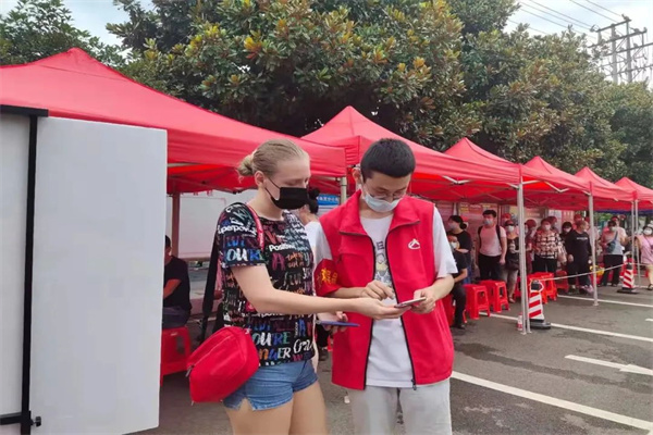 2021年的暑假,疫情防控仍处于攻坚阶段,刘俊泽和往常一样积极投身于防疫工作。由于自己的志愿经历丰富,且在工作岗位认真负责,被区团委罗书记任命为方舱接种点志愿者负责人。当他得知这个消息的时候,自身还有点胆怯。
