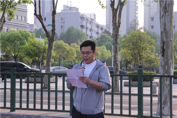 升旗仪式正式开始,国旗护卫队迈着整齐轻盈的步伐,迎着朝阳,以饱满的热情,庄严地护卫五星红旗。当铿锵有力的《义勇军进行曲》响彻整个校园时,鲜艳的五星红旗冉冉升起,全体师生怀揣着敬畏之心,行注目礼,升旗礼毕。接下来由旅游与酒店管理学院鲁旭老师发言,让我们共抗疫情,共赴未来!