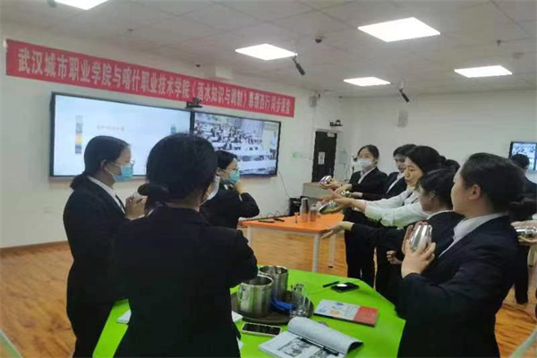 启动仪式结束后,武汉城市职业学院钟华教师,武汉市技术能手,《酒水知识与调制》课程主讲老师,正式开启“慕课西行同步课堂”线上线下混合式课堂教学。课堂上,钟华老师采用任务驱动法、小组拼图法等教学方法,灵活运用“弹幕”“词云”“快问快答”“头脑风暴”等多种信息化教学手段组织课堂教学。在实操部分,鉴于喀什职业技术学院实训环境和实训条件有限,双方教师经过多轮研讨备课,最终确定实操耗材用大米、小米和绿豆来替代传统的冰块和酒水,来进行摇和法的基础练习,突破了喀方实训器具和耗材限制,解决了喀方此门课程的教学痛点。两校师生远隔千山万水,借助智慧树技术平台,用同步课堂形式,云端相聚、实现了实时互动交流,两校师生相互借鉴,取长补短,享受课堂,充分感受《酒水知识与调制》这门课的魅力,首次课堂在喀什职业技术学院学生一段优美活泼的新疆民族舞中结束。