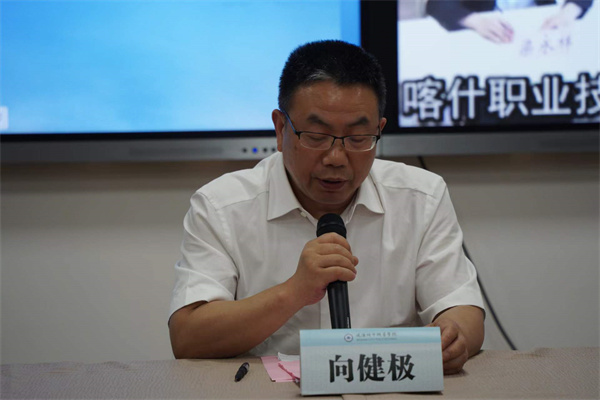 喀什职业技术学院教务处处长李新和经济管理系主任乔骏分别发表讲话,介绍了喀什职业技术学院及经济管理系的发展历程、学校在教学改革方面取得的成就,并表示希望两校能保持友好交流并在更多的领域建立合作关系,共谱职教发展的新篇章。