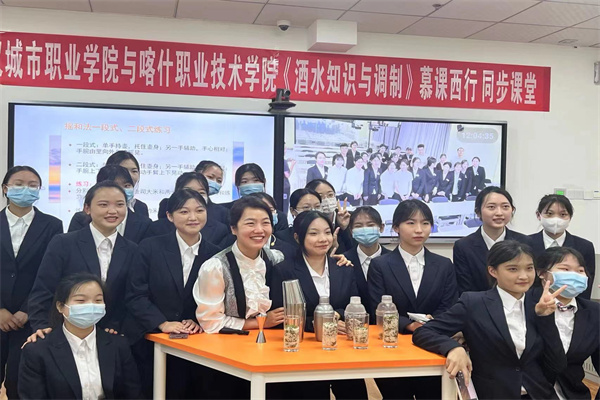 “慕课西部行计划”2.0是教育部高教司倡导的行动,旨在推动优秀教学资源,支援西部地区高校,是一项促进教育公平、具有公益性质的行动。我校本次与喀什职业技术学院合作,借助智慧树技术平台,开展《酒水知识与调制》慕课西行同步课堂教学活动,发挥学校课程优势和研究成果资源,确保教学内容的实用性和教学形式的多样化,既注重理论讲授,也注重学生动手,让参加同步课堂的学生学有所思,学有所获,学有所悟,旨在推动优秀教学资源,支援西部地区高校,推动教育部‘慕课西部行计划’2.0的进一步深化。