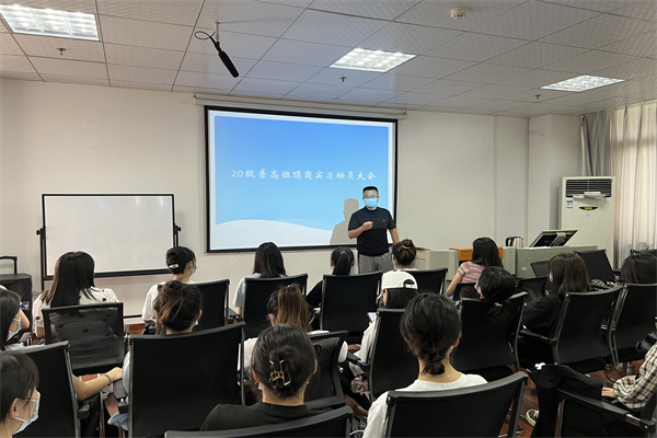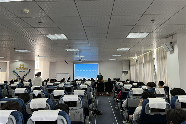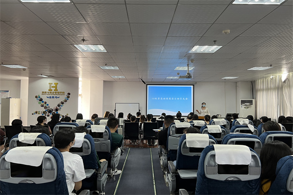 2022年4月26日中午,空乘教研室在航空理实一体化实训室举行了20级普高班乘务专业学生实习临行前动员大会。出席本次动员大会的有顶岗实习负责人,顶岗实习指导老师、辅导员老师以及2001、2002全体学生共八十余人参加了会议。