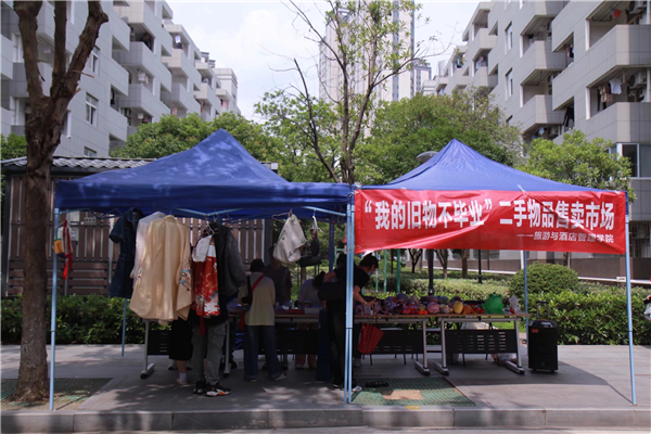 活动期间,旅游与酒店管理学院分团委学生会的志愿者们在学生公寓楼下设置小型摊位,帮毕业生售卖二手物品。有将近两百多位毕业生参与到整场活动中来,体验第一次“老板”的感觉,有欢声、有笑语。新同学在源源不断加入,气氛火爆,各类二手商品应有尽有且新奇独特。在购物过程中,同学们在线下愉快地交流和沟通,不仅收获了自己心仪的二手商品,还懂得了节约和珍惜,更有不少毕业生们将自己的学习资料以半卖半送的形式转让给有需要的同学,分享知识和快乐,而那些充满回忆的“商品”将在新任主人手中再次焕发光彩,实现资源再利用,发扬节约的美德,加强校园文化建设。大三学生同学表示,“我们毕业了,有很多东西没法带走,所以就拿出来便宜卖,双方都感觉挺合适的,希望我们能把自己的美好的校园时光和温暖的回忆继续传递下去!”