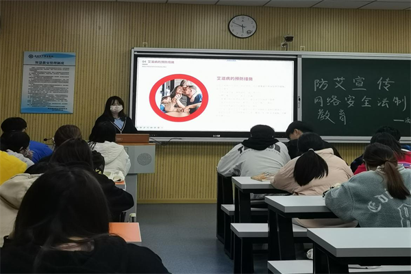 武汉城市职业学院旅游与酒店管理学院酒店管理与数字化营运2103班于11月21日下午5点40分2-3-203教室举行“网络安全法治,防艾宣传教育”主题教育班会。本次班会由班长尹红娟同学主持,酒店管理2103班全体成员参加。