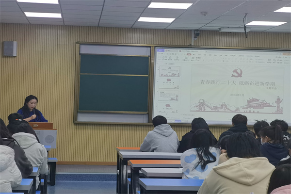 新学期,新气象。为深入学习贯彻党的二十大精神同时帮助同学们更快适应新学期的到来,恢复学习状态,2月19日下午,由辅导员严利老师组织酒店2201、2202、2203三个班级召开了以“青春践行二十大·砥砺奋进新学期”为主题的开学第一次班会。